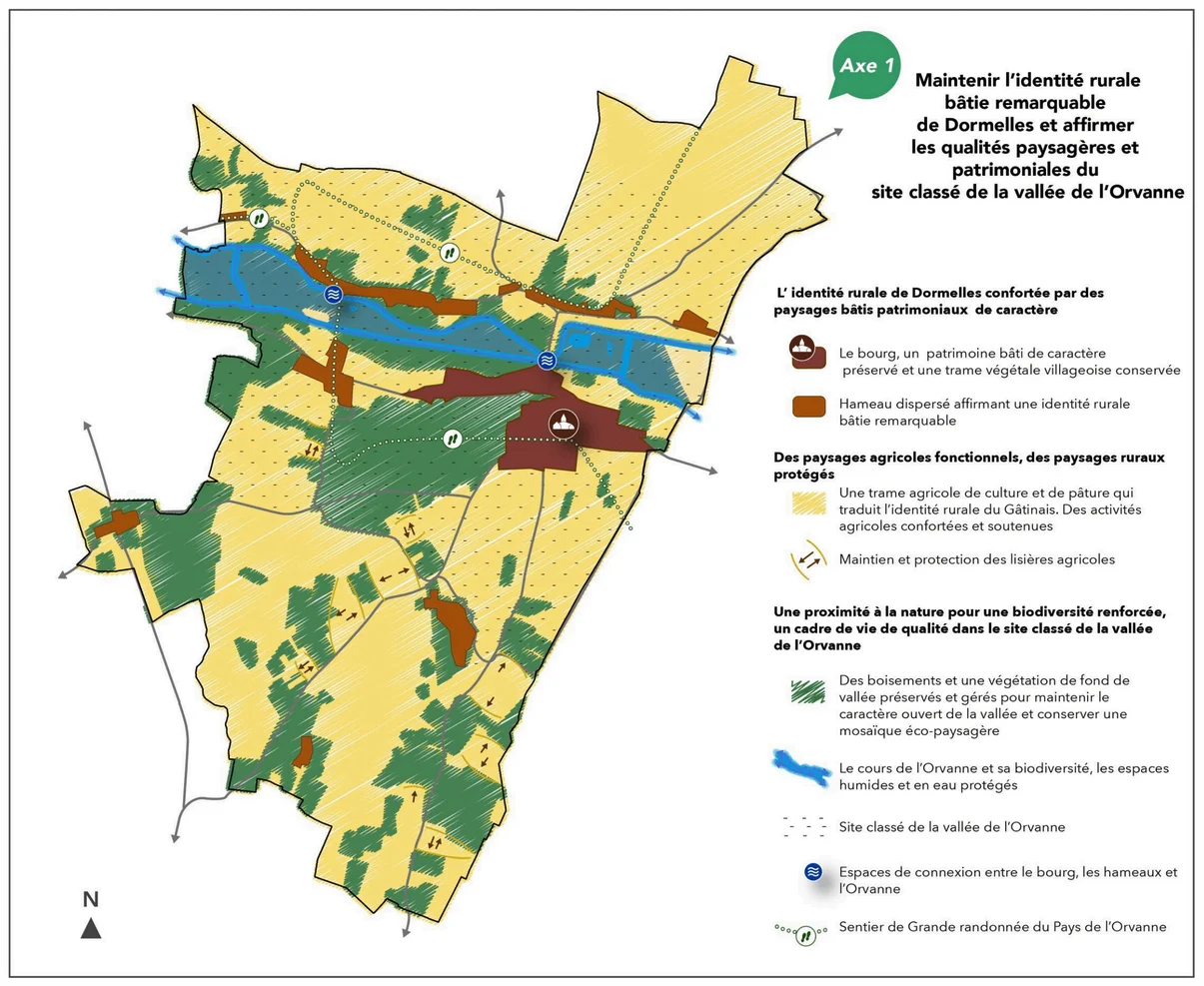 Maintenir l’identité rurale bâtie remarquable de Dormelles, affirmer les qualités paysagères du Gâtinais français et patrimoniales du site classé de la vallée de l’Orvanne,