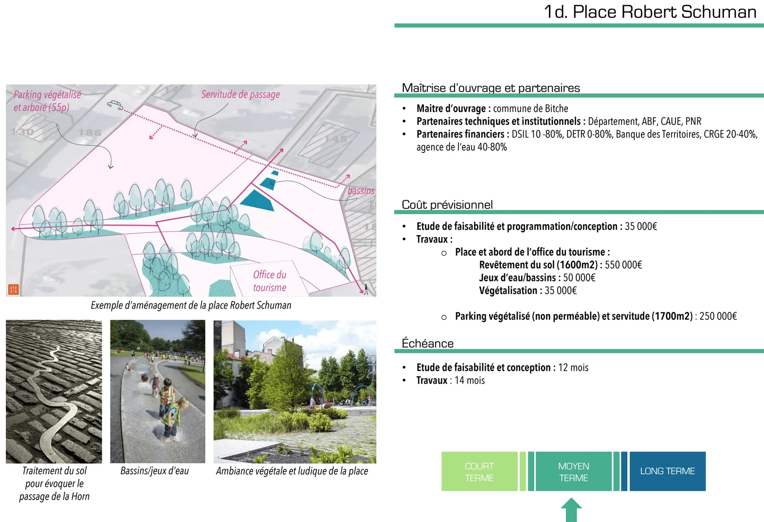 Des projets de travaux du centre-ville et des réflexions pour dynamiser Bitche avaient déjà étés engagés : transformation de la rue Maréchal Foch en espace partagé, création d’un tiers lieu pour accueillir les personnes en télétravail, création d’une galerie d’art virtuelle… La présente étude visait à faire émerger une une vision stratégique d’ensemble au bénéfice de la revitalisation du centre-bourg de Bitche.